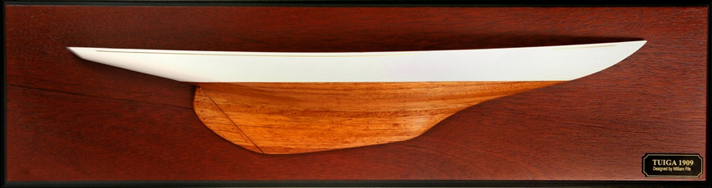 Hand-crafted plank-on-frame wood hull with white topsides, gold cove stripe . Varnished stained wood hull.