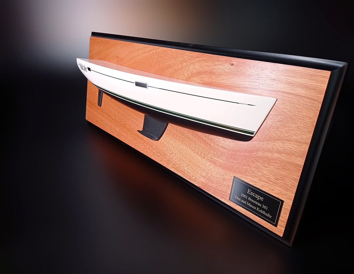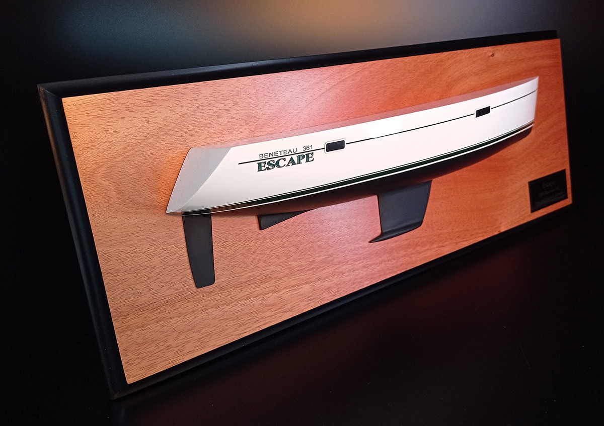 Take a look at this very good-looking custom half hull of the Beneteau 361 built upon request at scale 1/24 or 18 inches LOA.