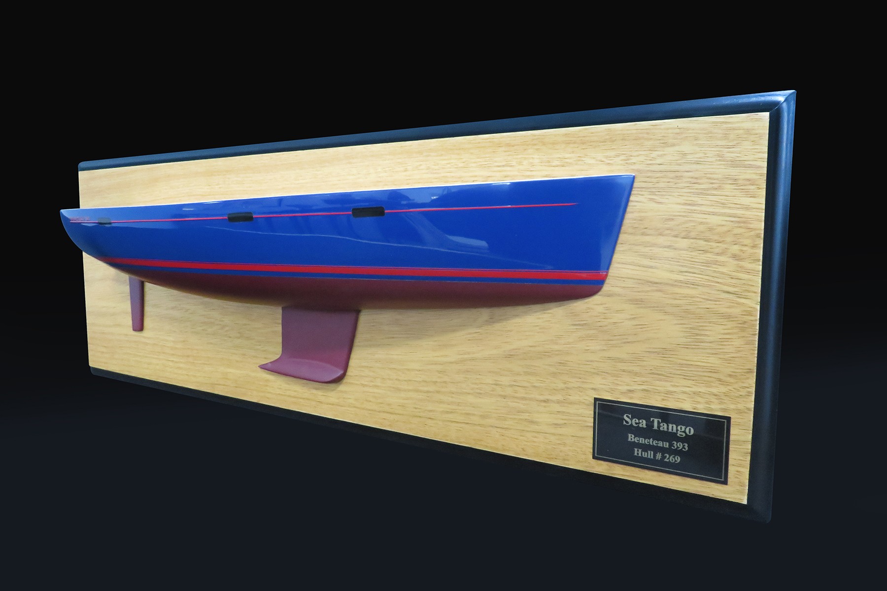 Check this gorgeous custom half hull of the Beneteau Oceanis 393, built at scale 1/24 or 20 inches LOA.