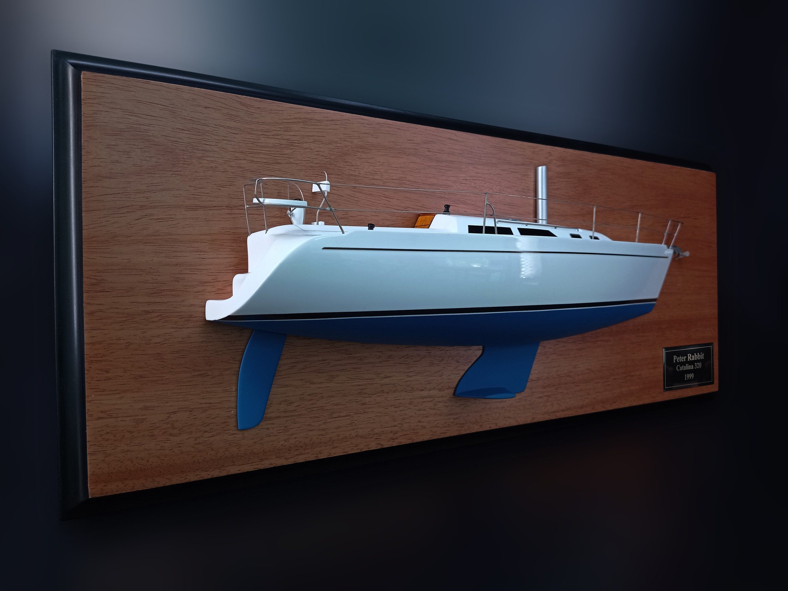 See this fabulous custom half model with deck details of the Catalina 320 built upon request at scale 1/24 or 16 inches LOA.