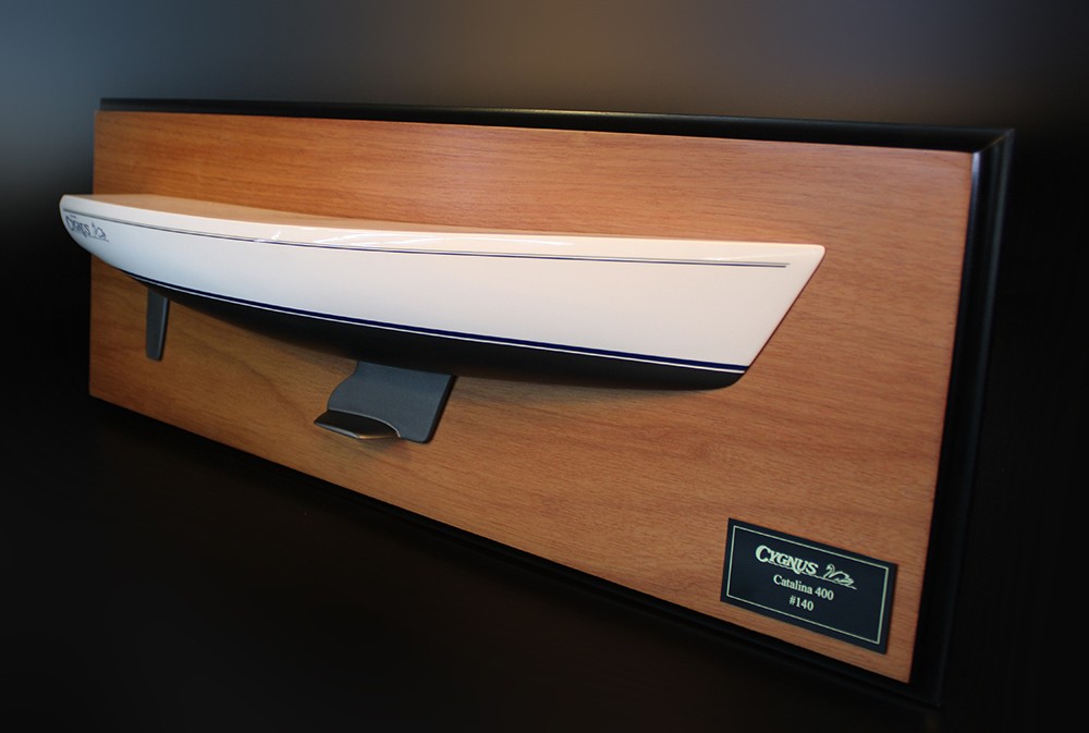 Discover this lovely flushdeck custom half hull of the Catalina 400, built upon request at scale 1/24 or 20 inches in length.