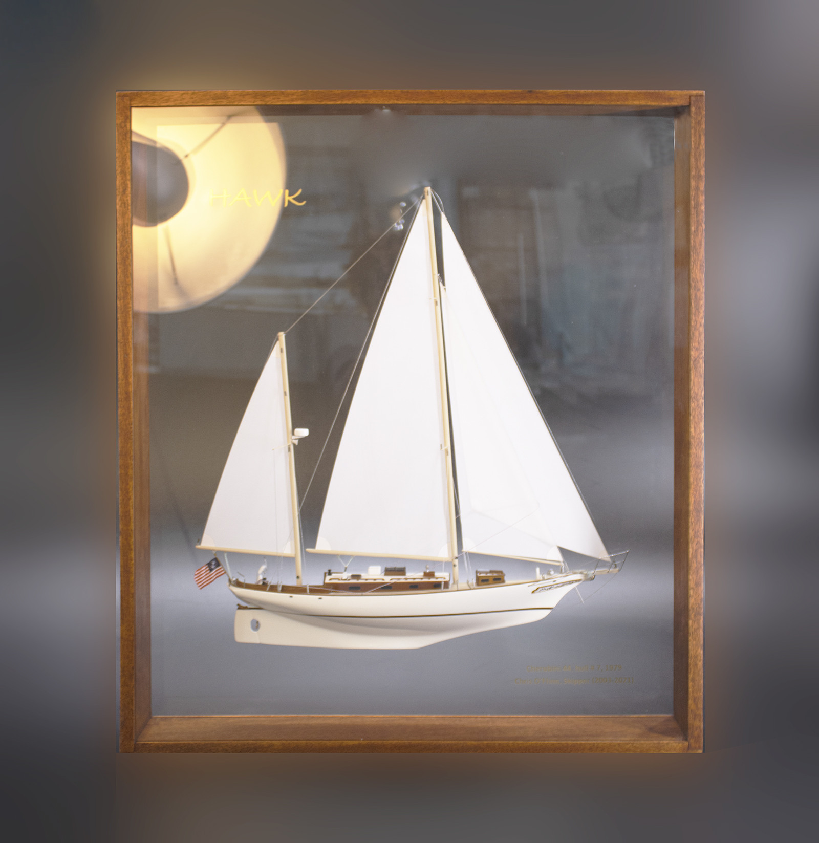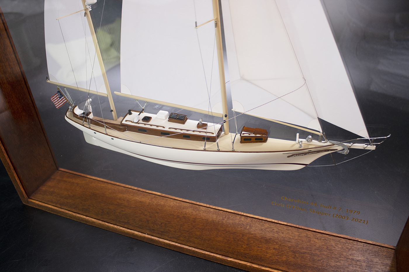Discover this exquisite custom half model with deck details of the Cherubini 44, built upon request and framed so you just have to hang it on a wall.