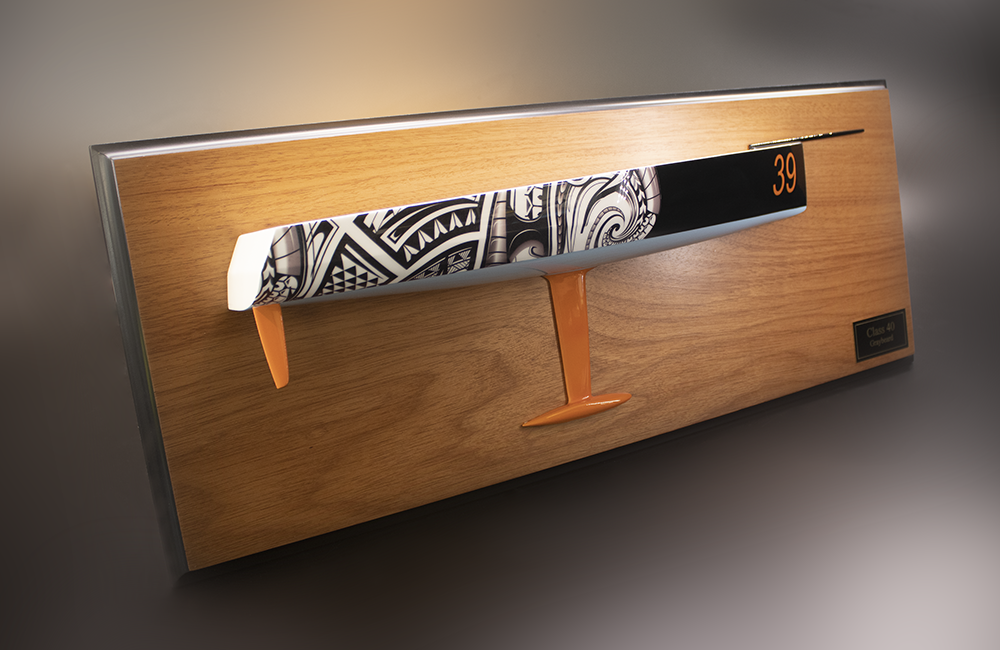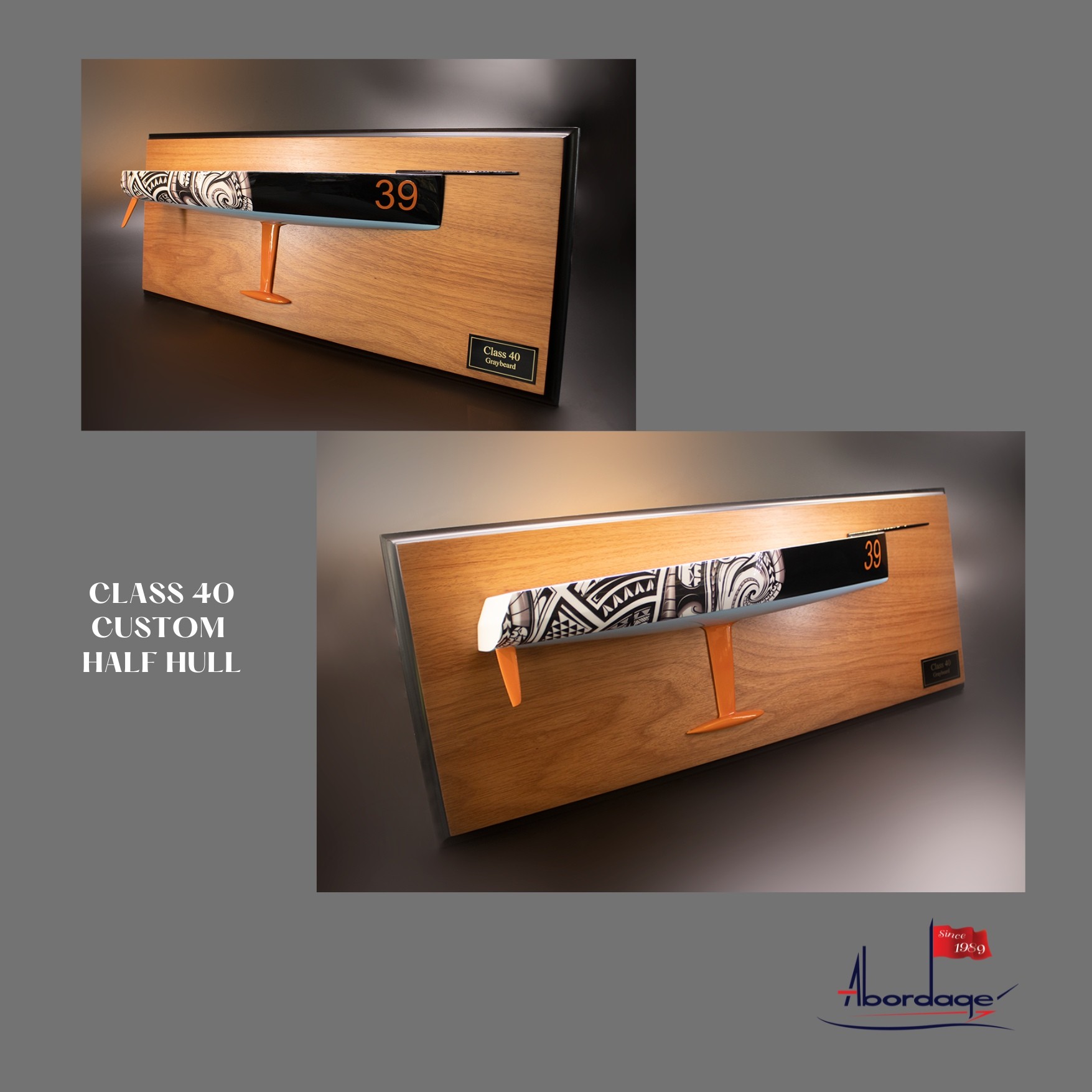 Spot this flawless custom half hull of the Class 40 built upon request at scale 1/24 or 20″ LOA.