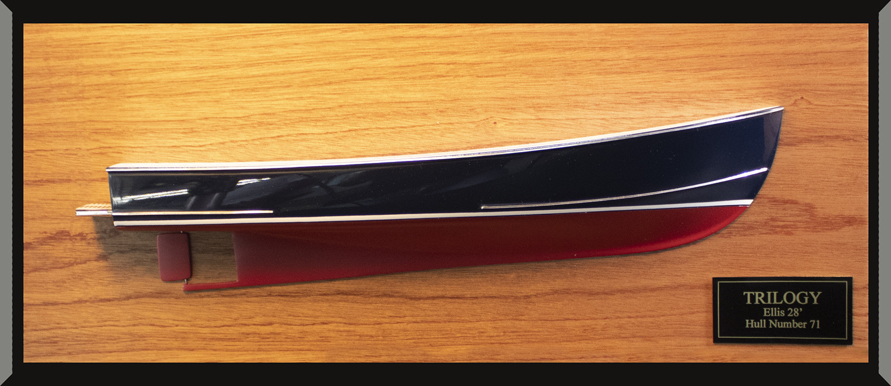 See this awesome custom half hull of the Ellis 28 built upon request at scale 1/24 or 14 inches LOA.