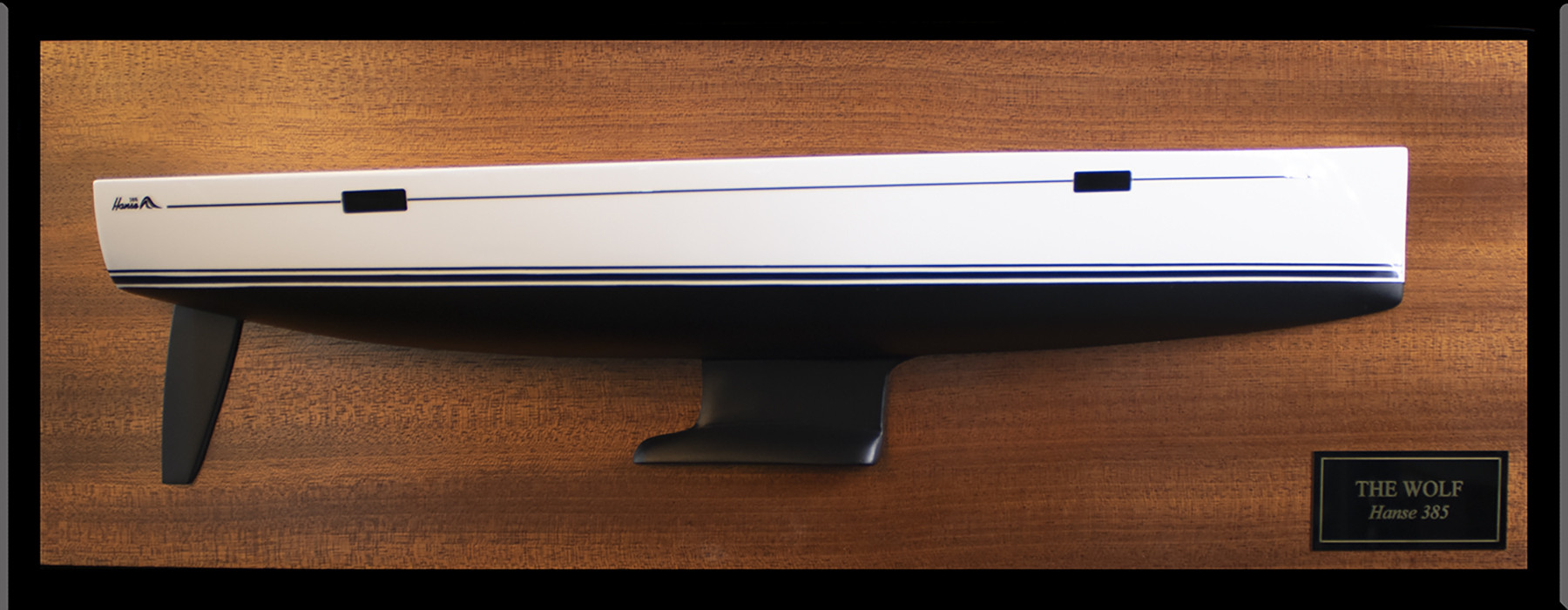 See this splendid custom half hull of the Hanse 385 built upon request at scale 1/24 or 19 inches LOA.