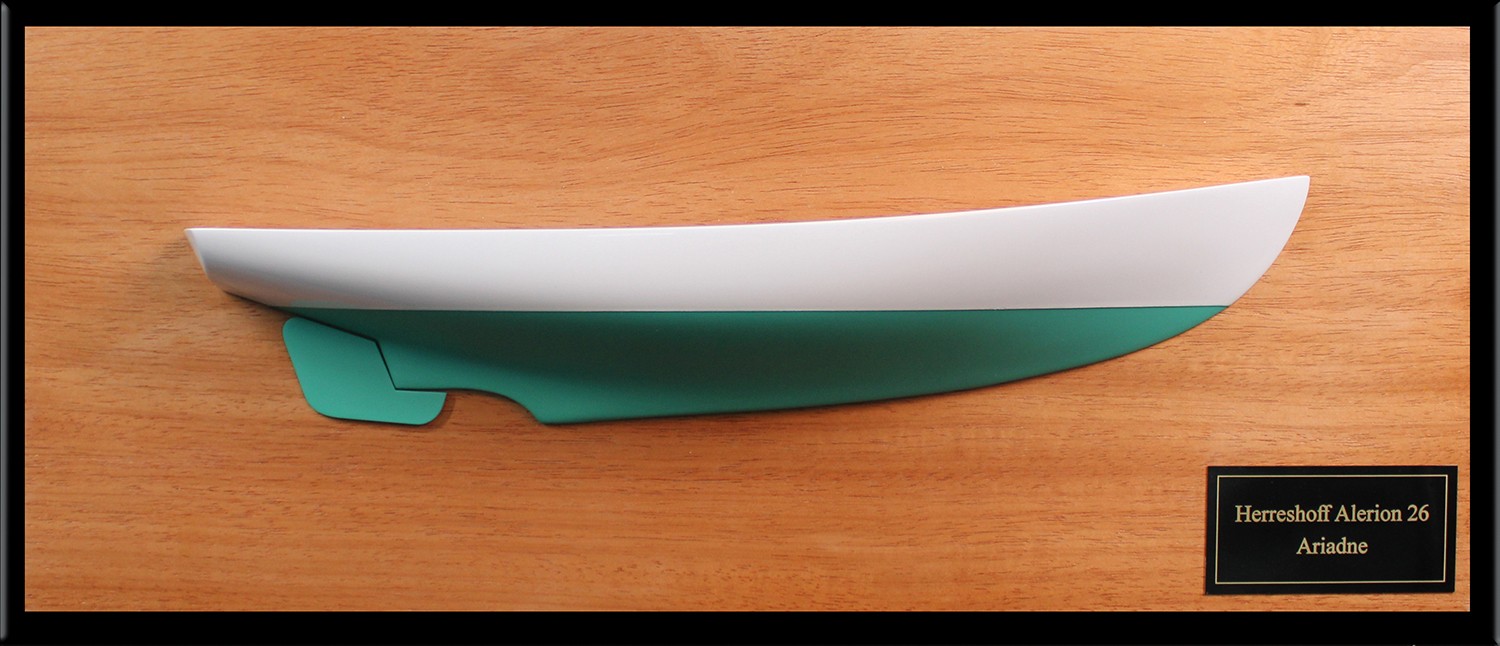 Discover this alluring custom half hull of the Herreshoff Alerion 26, built upon request at scale 1/24 or 13 inches LOA.