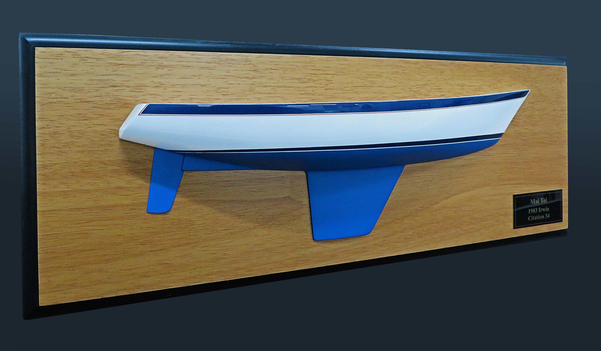 See this handsome custom half hull, flush deck of the Irwin 34 Citation, built at scale 1/24 or 17 inches LOA.