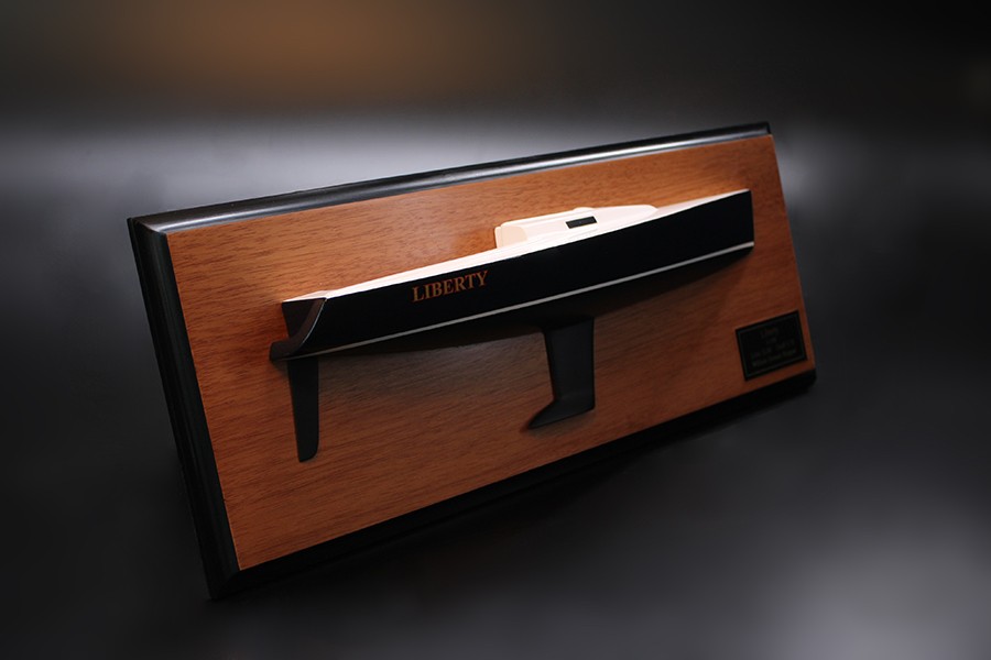 What about this elegant custom half hull of the J100 built upon request at scale 1/24 or 17″LOA.