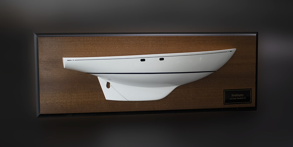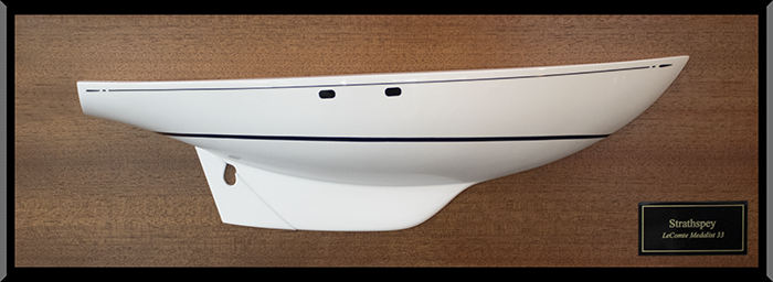 Check this graceful custom half hull of the Lecomte Medalist 33-2, built upon request at scale 1/24 or 17 inc. LOA.