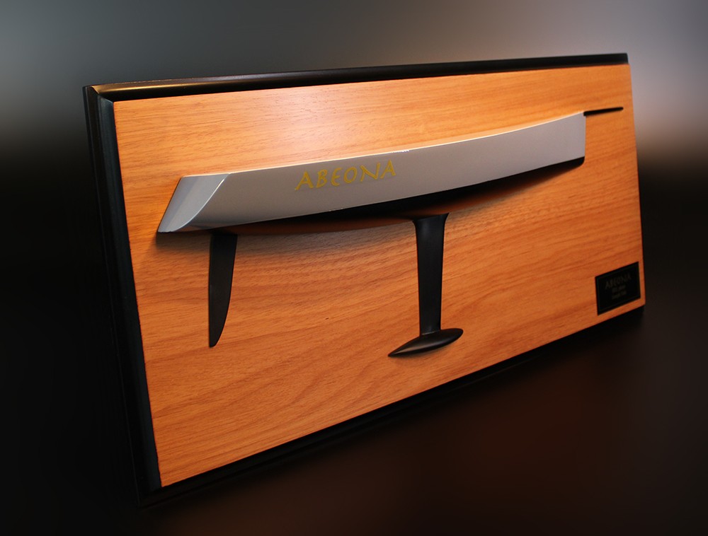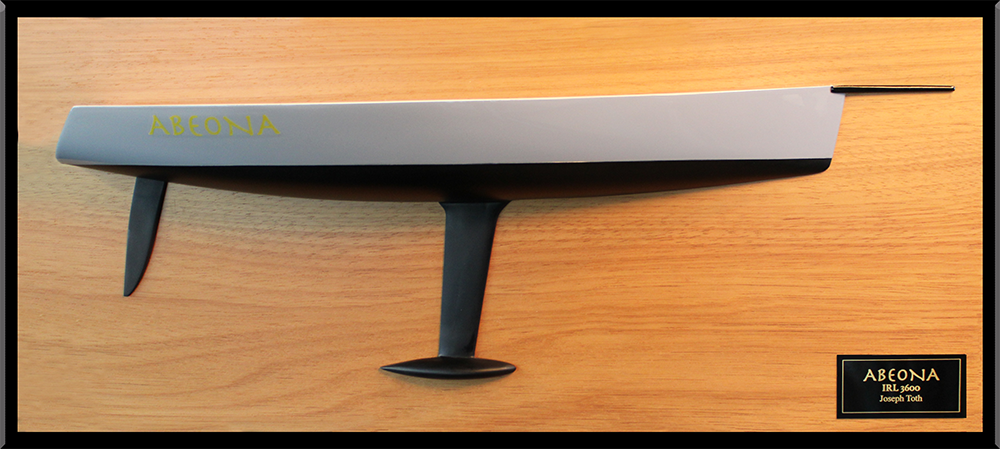 Have a look at this elegant custom half hull of the Mumm 36, scale 1/24 or 18 inches LOA.