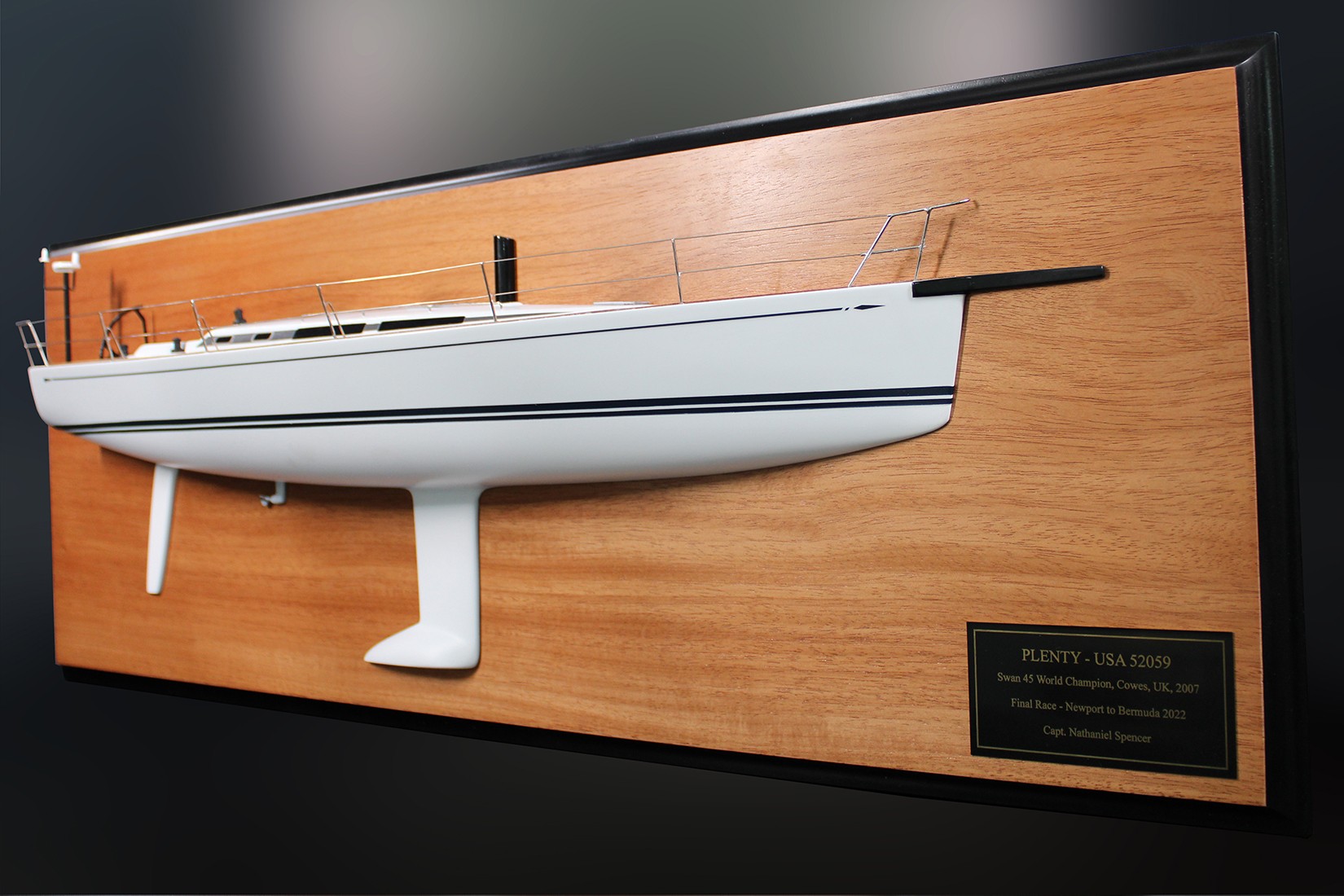 See this alluring custom half model with deck details of the Swan 45 built upon request  at scale 1/24 or 22-23 inches LOA.