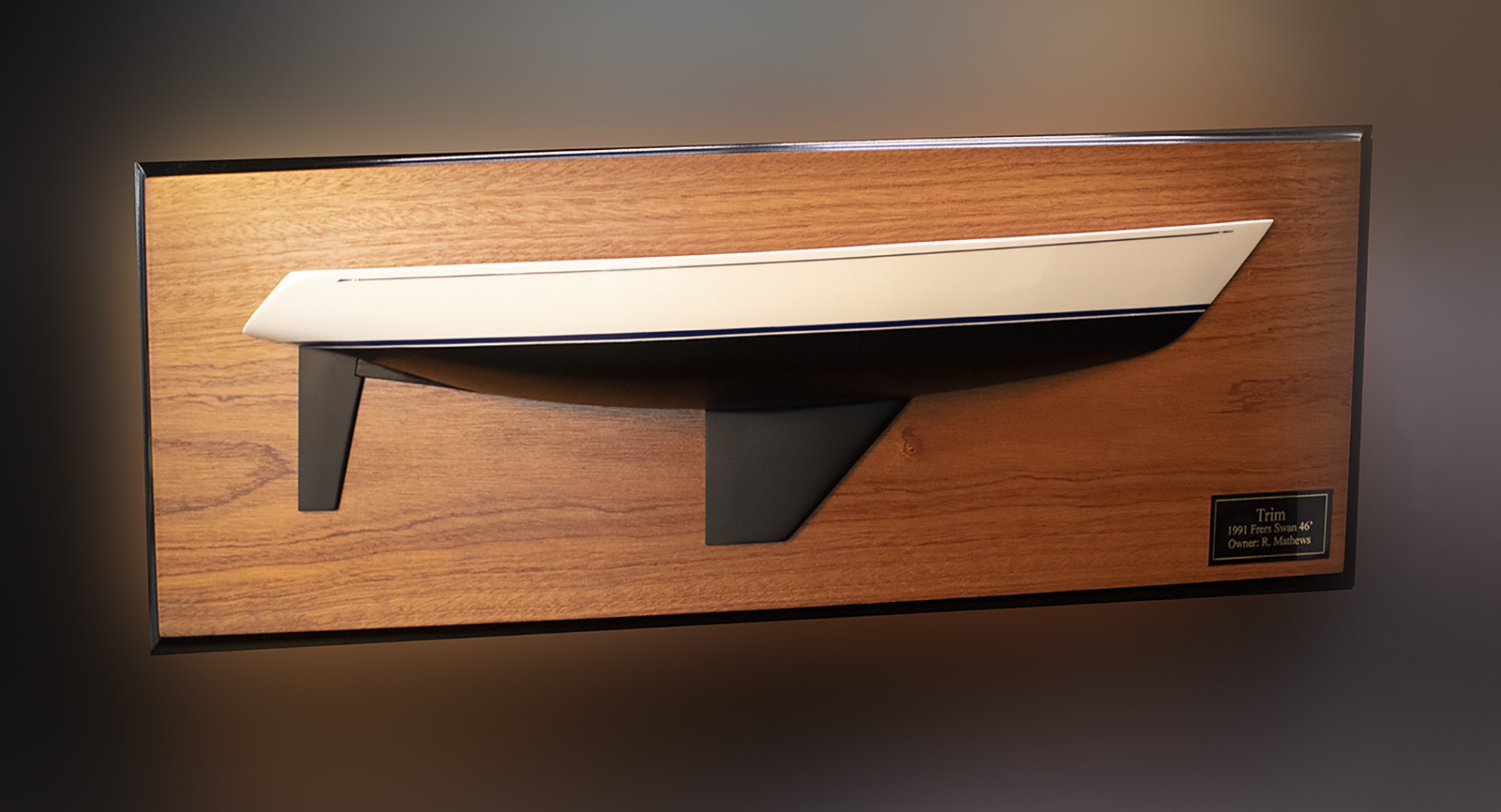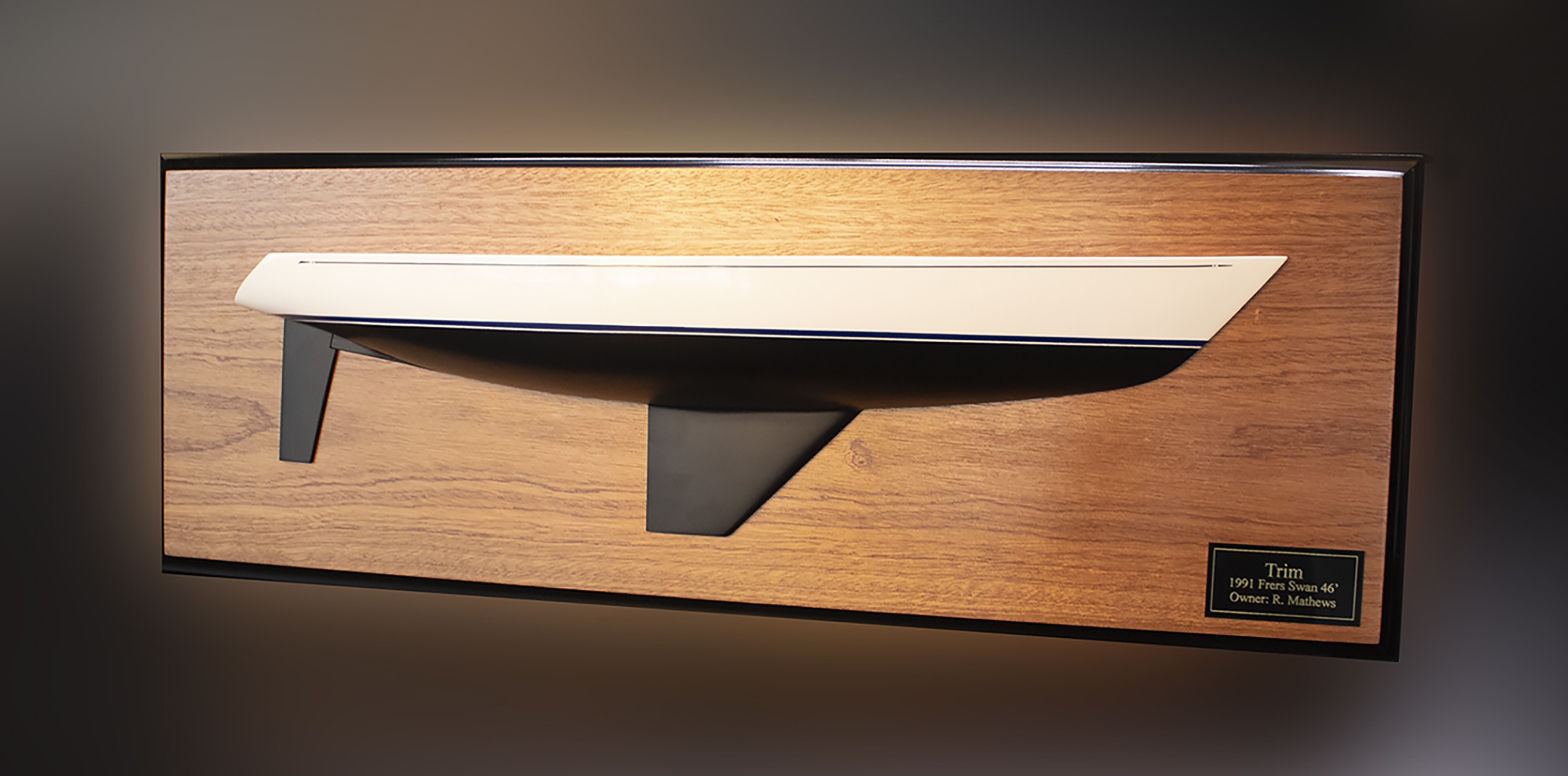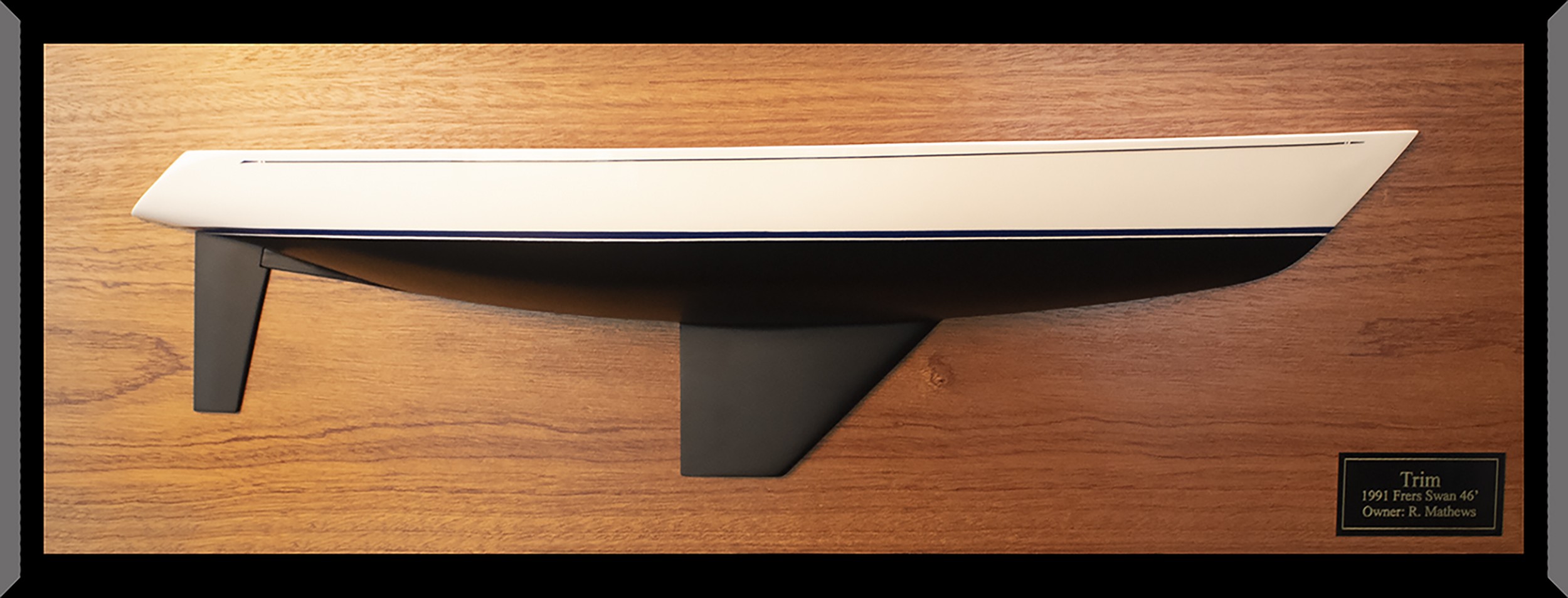 Admire this graceful custom half hull of the Nautor’s Swan 46 MKII ( 1991 Frers ) built upon request at scale 1/24 or 23 inches LOA.