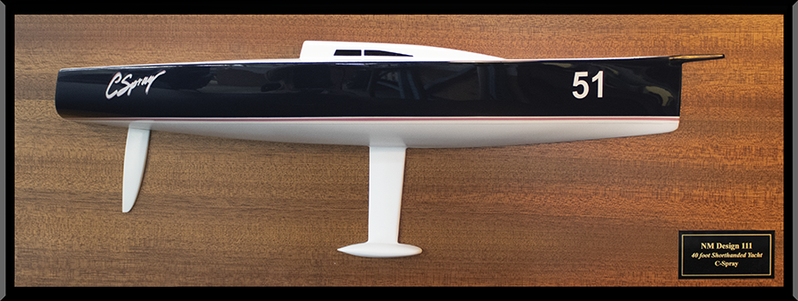 Discover this tremendous custom half model of the Nelson Mareck NM design 111, 40 built, starboard side, upon request at scale 1/25 or 19 inches LOA.