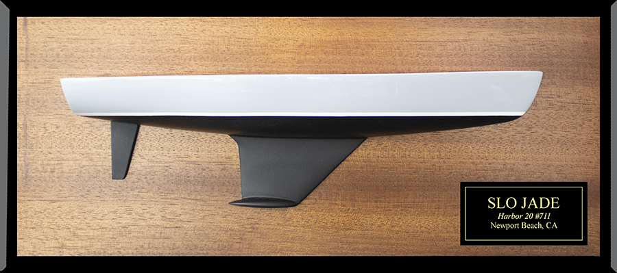 See this fabulous custom half hull of the Schock Harbor 20, built upon request at scale 1/19 or 13 inches LOA.