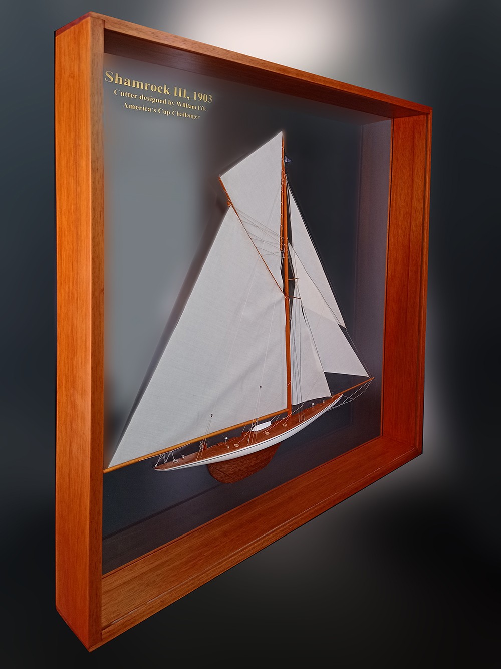 Discover this phenomenal framed half model of the Shamrock III, designed by William Fife, built by William Denny and Brothers for Sir Thomas Lipton and launched in March 1903.