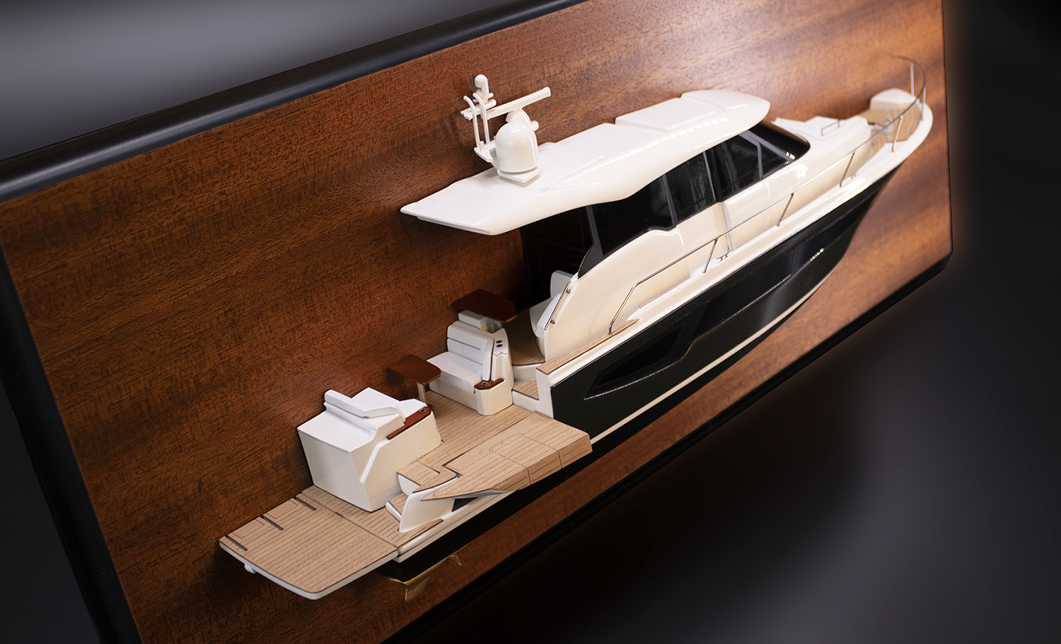 Focus on this gorgeous custom half model of the Tiara EX54 RF001 built upon request at scale 1/32 or 20 inches LOA.