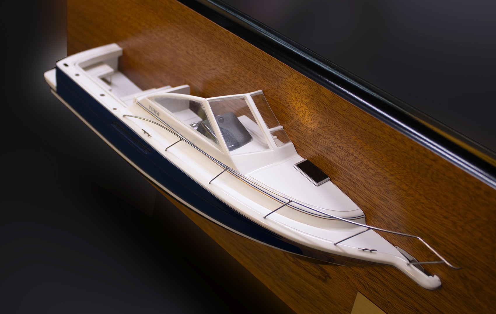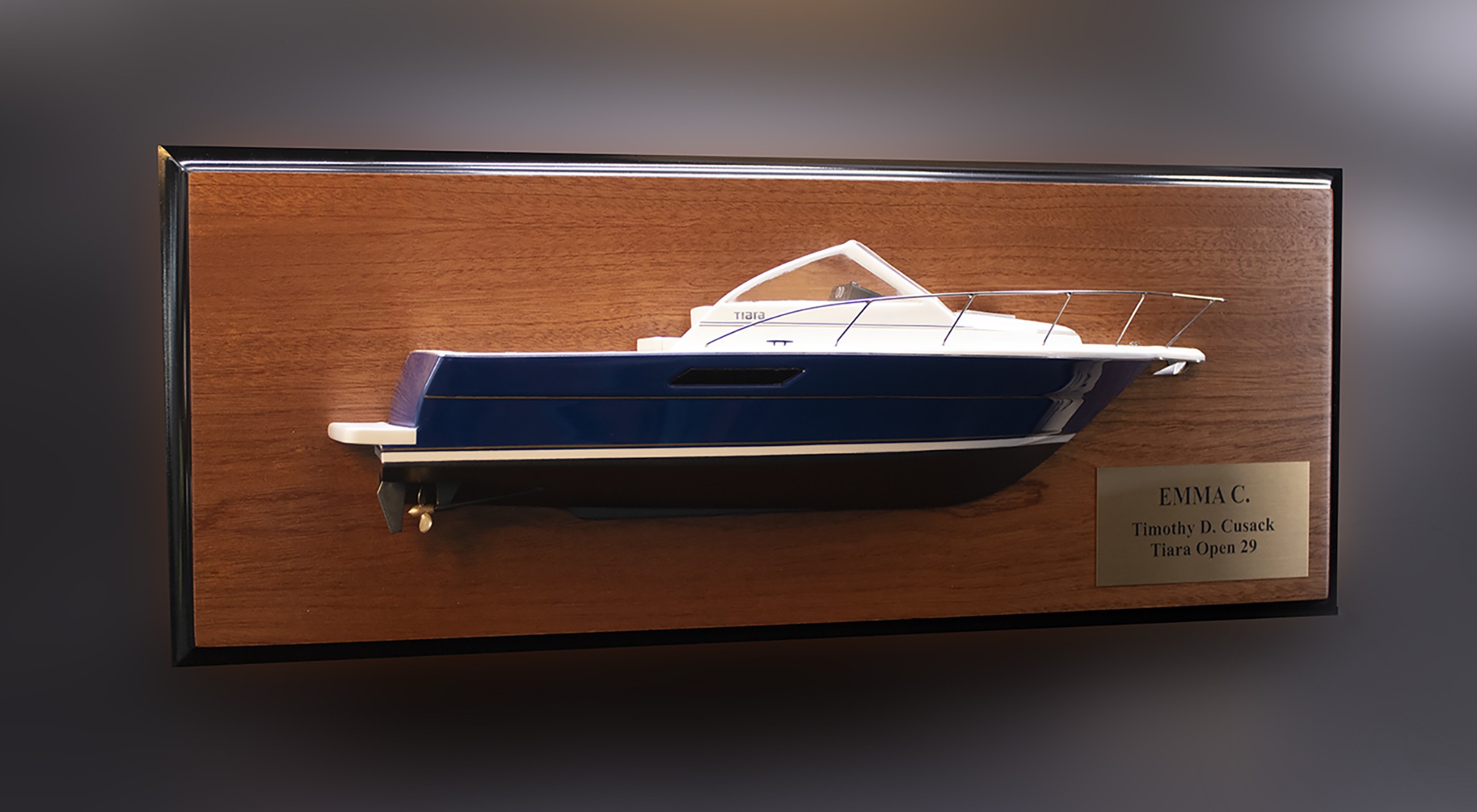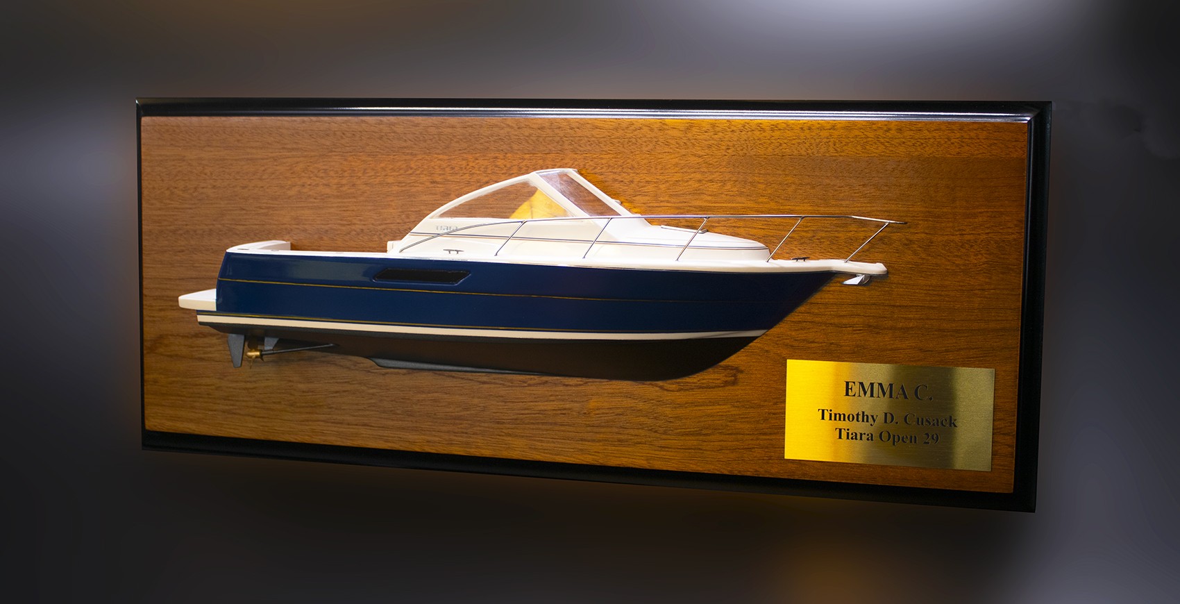 Spot this striking custom half model with deck details of the Tiara Open 29 built upon request at scale 1/2 or 14.5 inches LOA.
