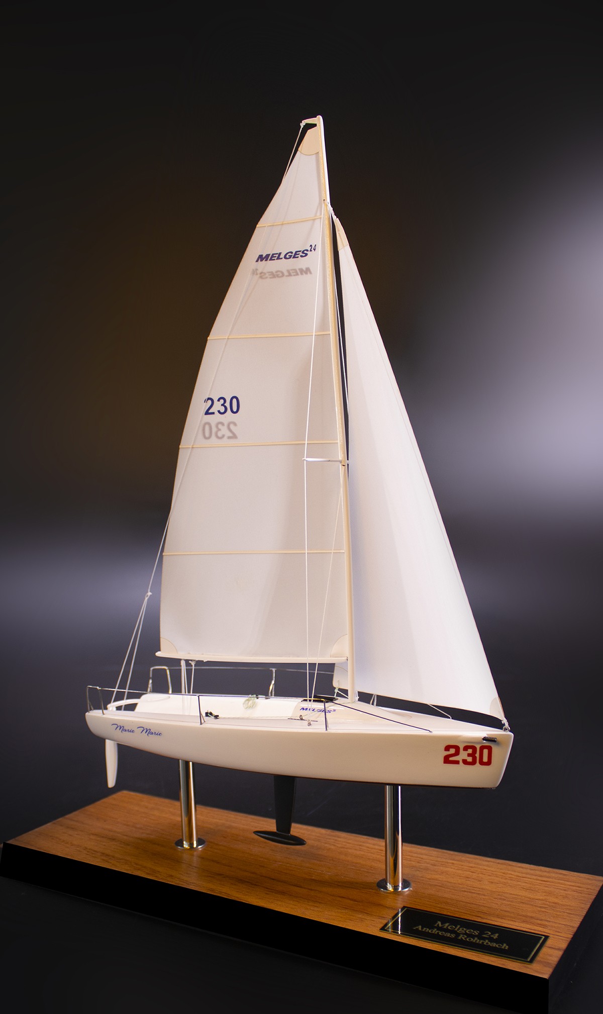 Spot this alluring custom desk model of the Melges 24 of 8 inches LOA., built upon request and shipped overseas.