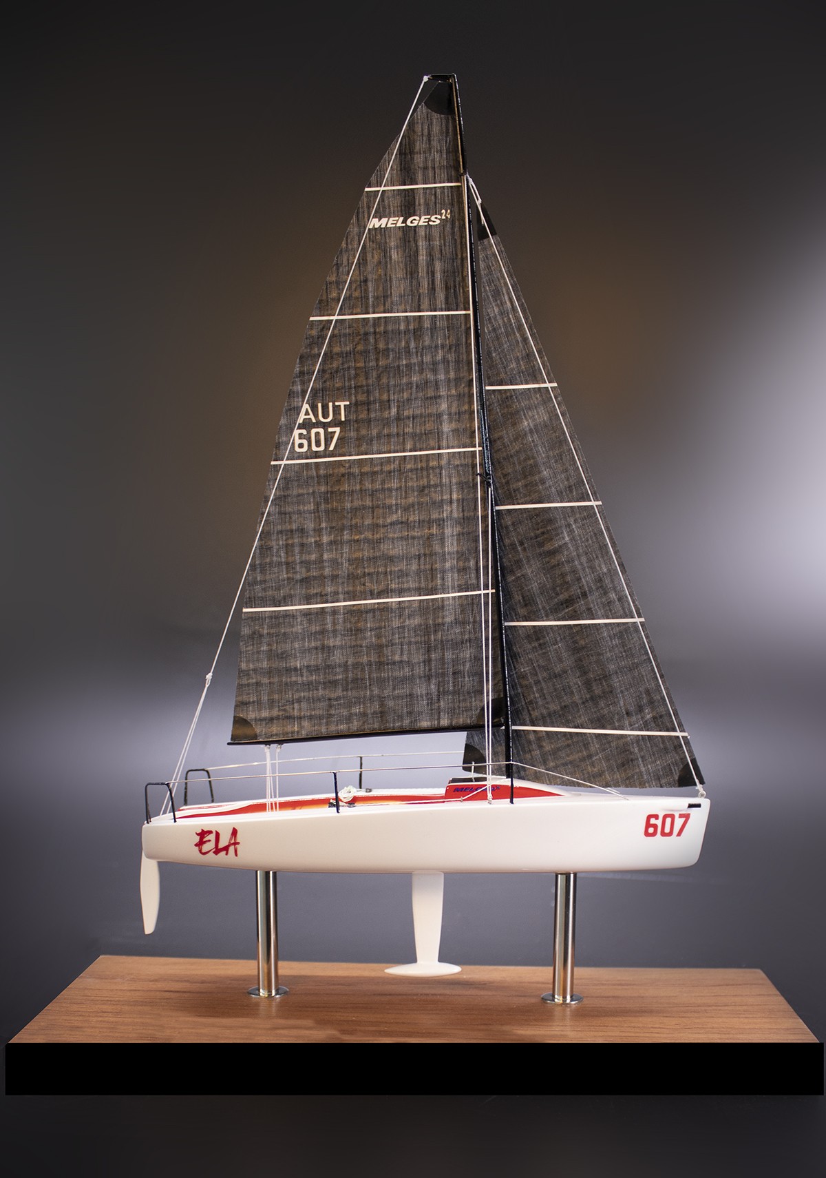 Watch this ravishing 8 inches custom desk model of the Melges 24 built upon request.