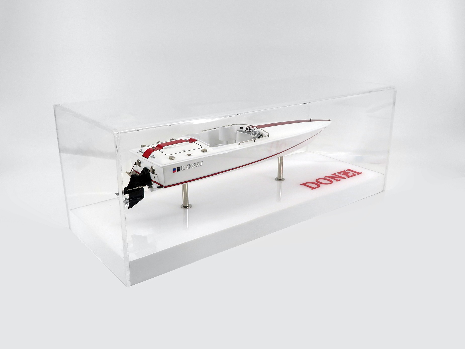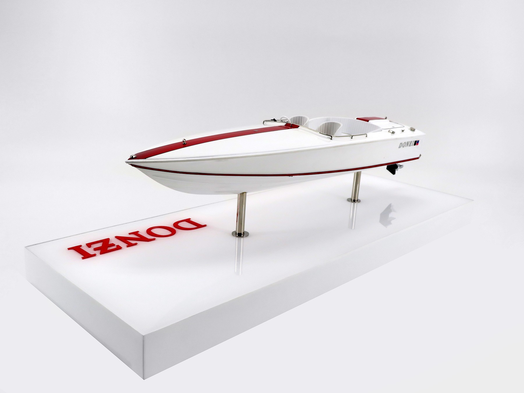 Discover this flawless custom model of the Donzi 18 built at scale 1/15 or 14 inches LOA.
