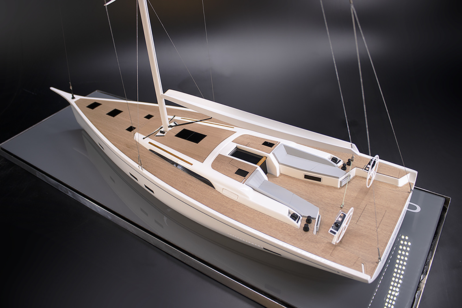 Focus on this wondrous custom model of the Grand Soleil 52 Performance, built at scale 1/25 or 25 inches (63cm), cut at the waterline with removable mast for an easy shipping