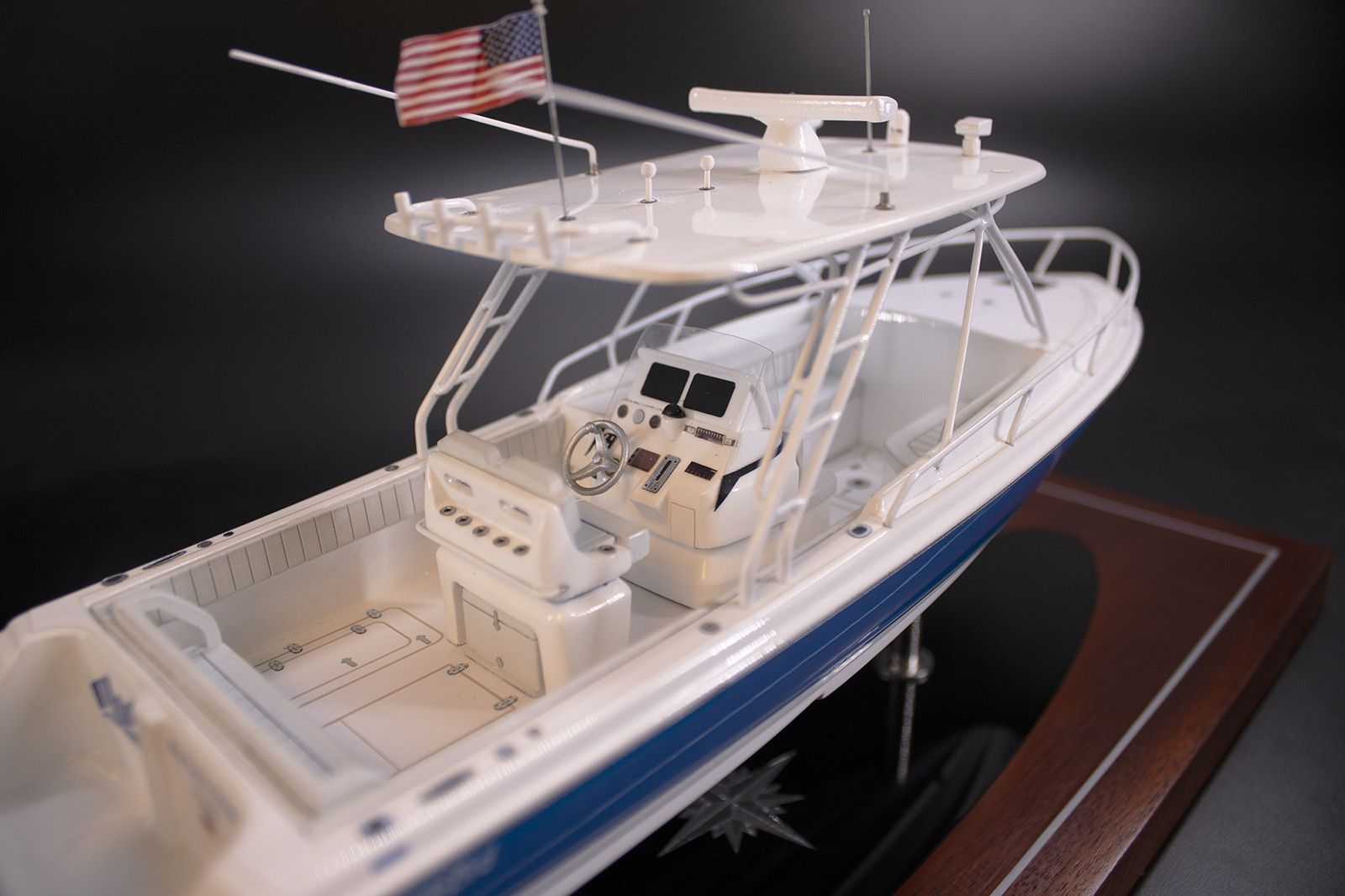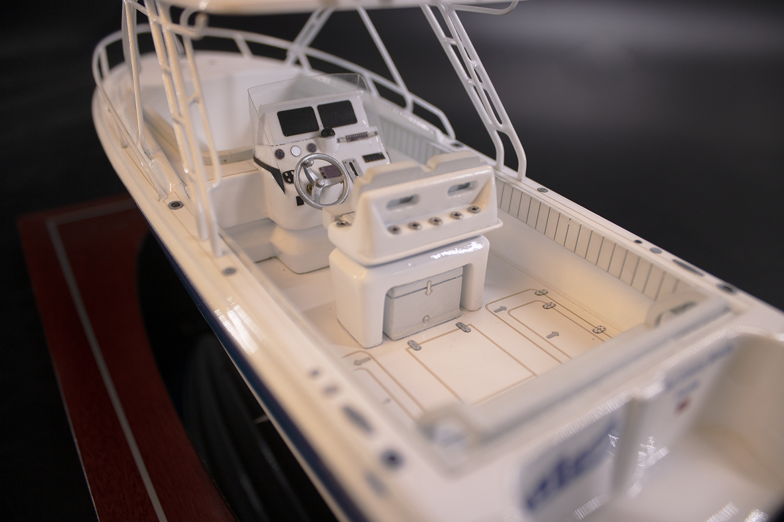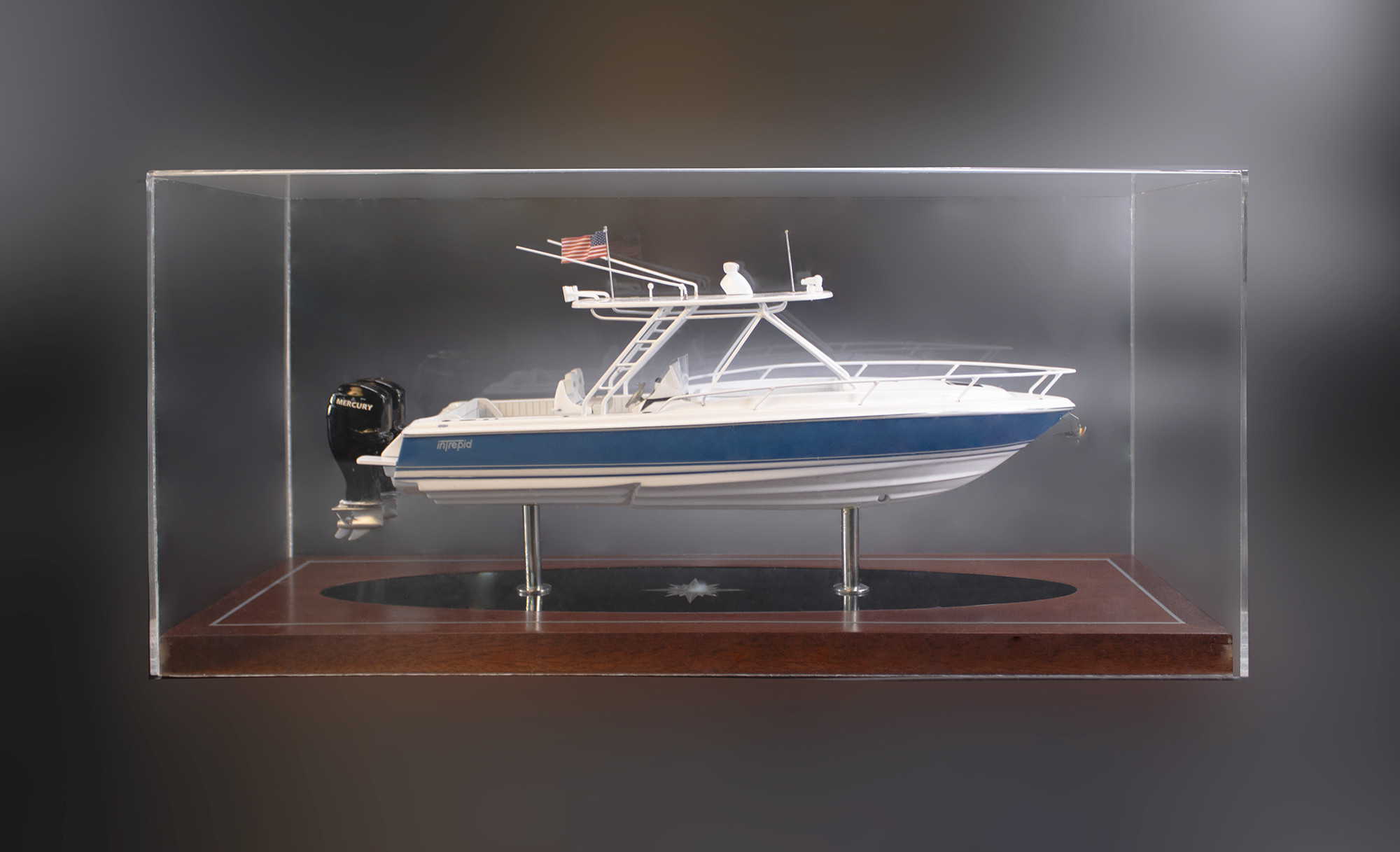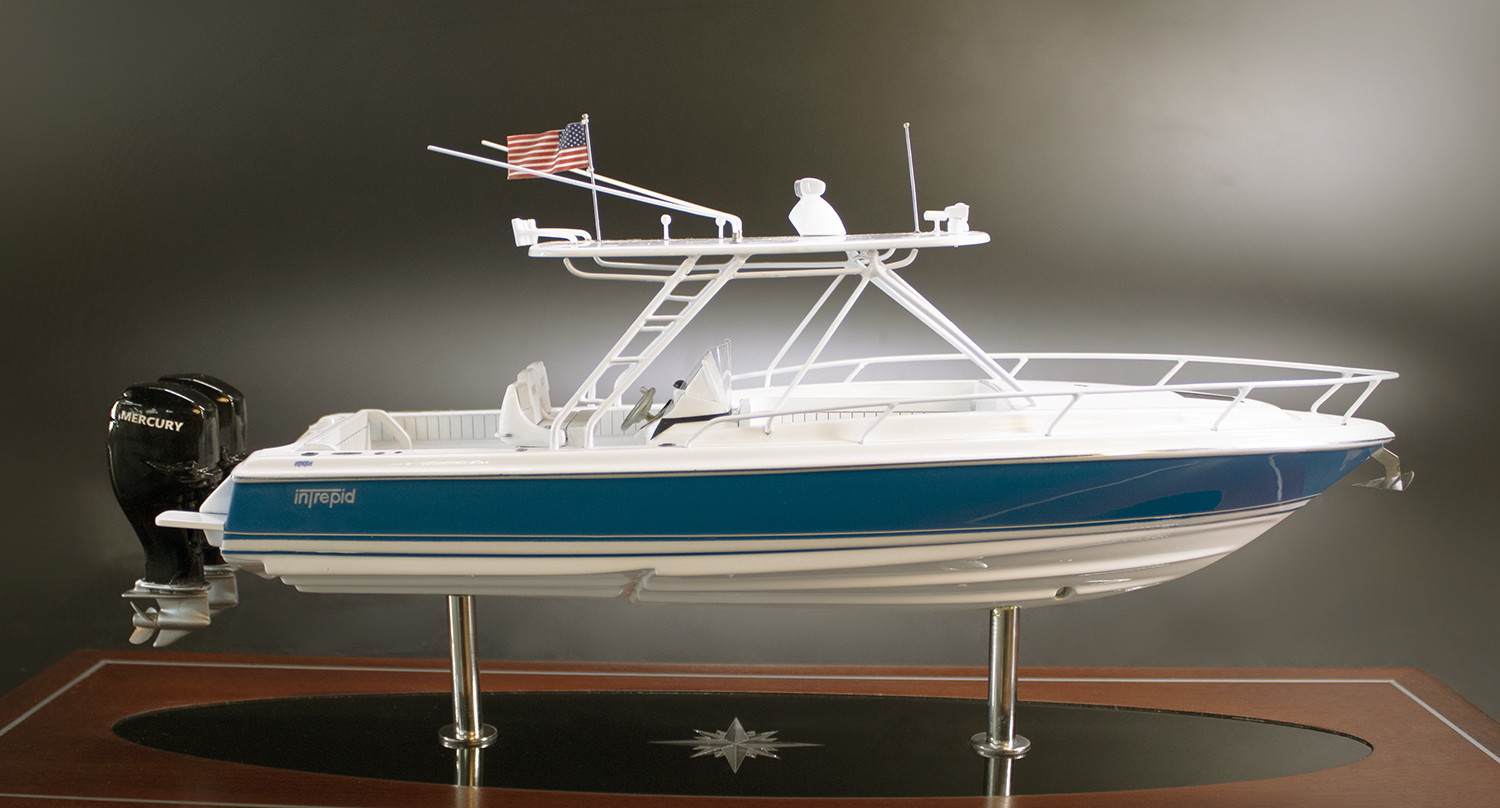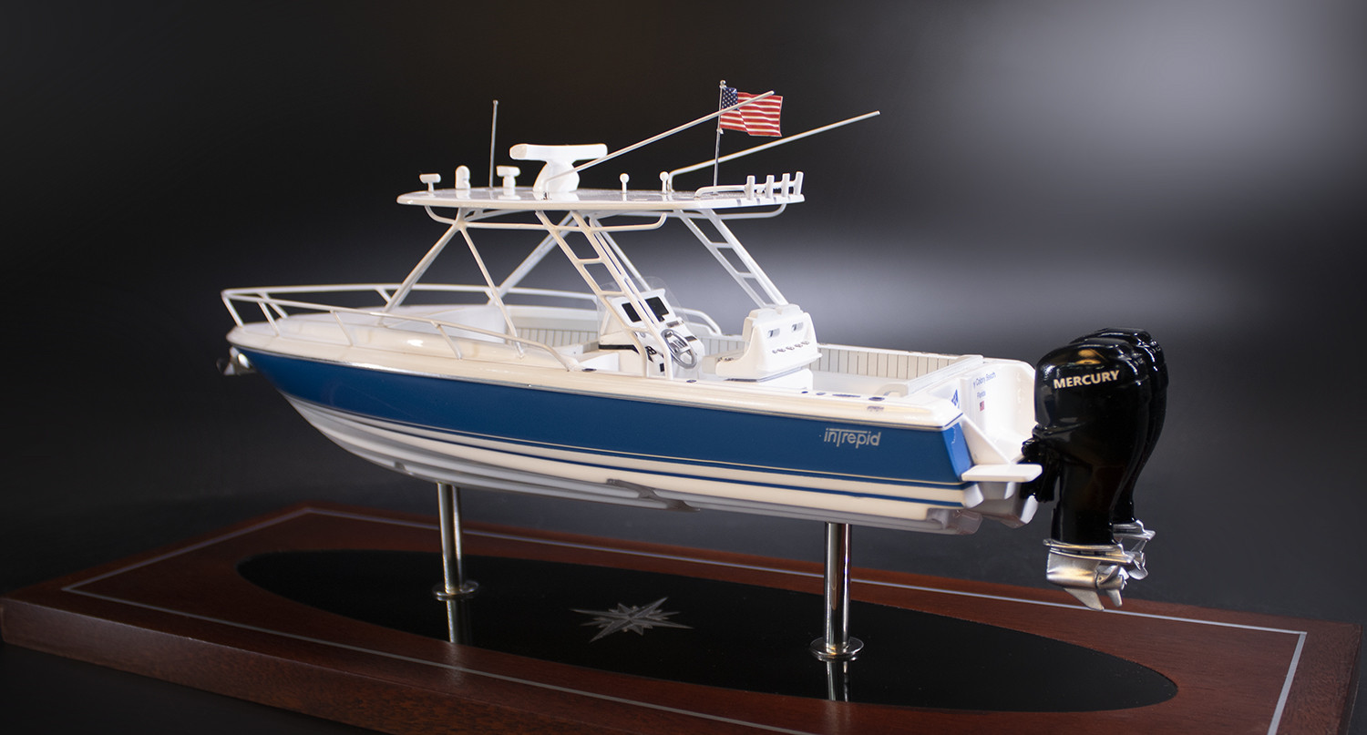 Stare at this dazzling custom desk model of the Intrepid 323 Cuddy built upon request at scale 1/32 or 12 inches LOA.