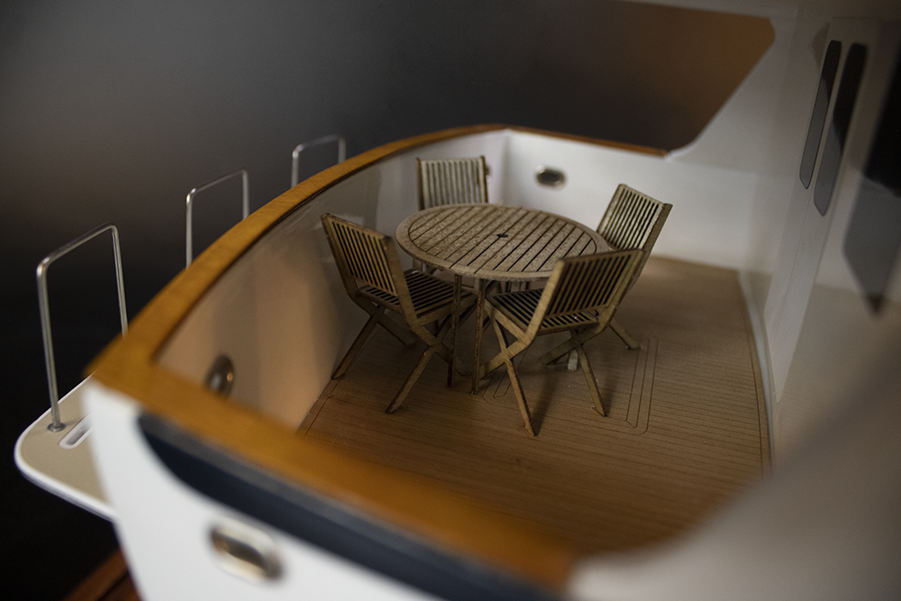 Discover this wondrous custom model fully detailed of the Kadey Krogen 52, built upon request at scale 1/20 or 31″LOA.