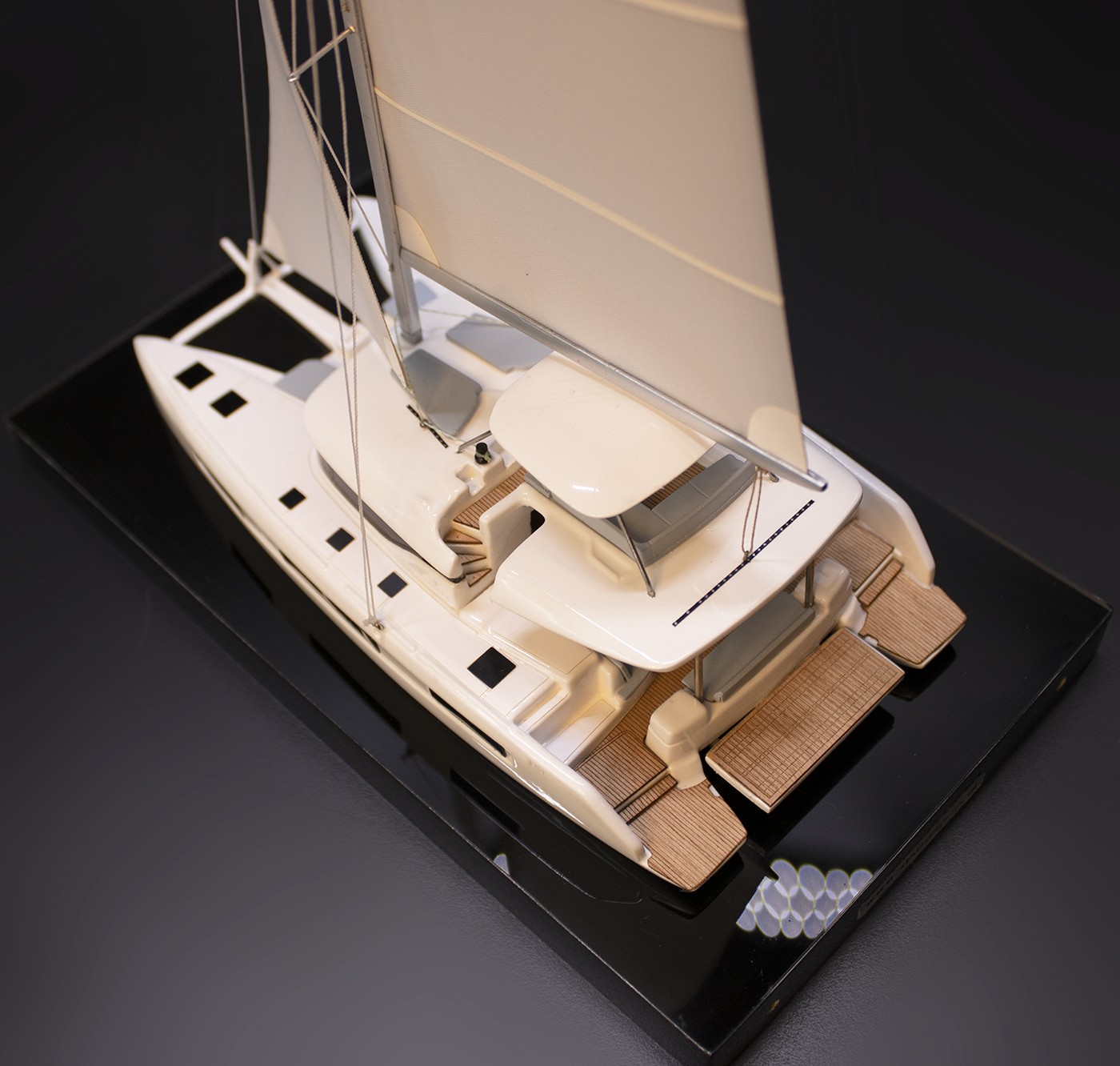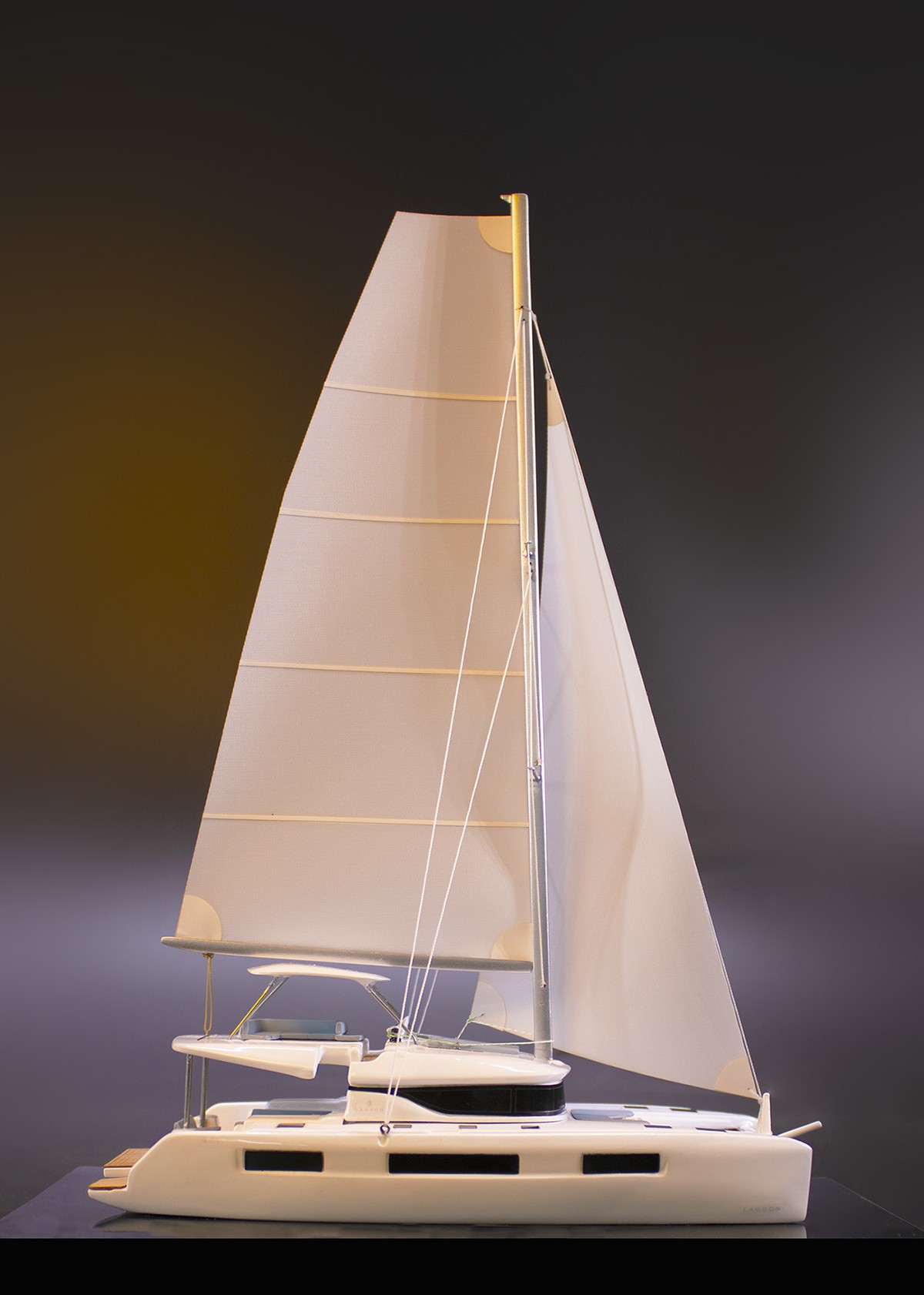 Don’t miss this ravishing desk model of the Lagoon 51 built upon request at scale 1-87 or 7 inches LOA.