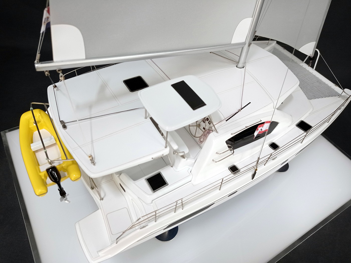 Have a look at this flawless custom model of the Leopard 44 catamaran built upon request at scale 1/32 or 16.5 inches LOA.