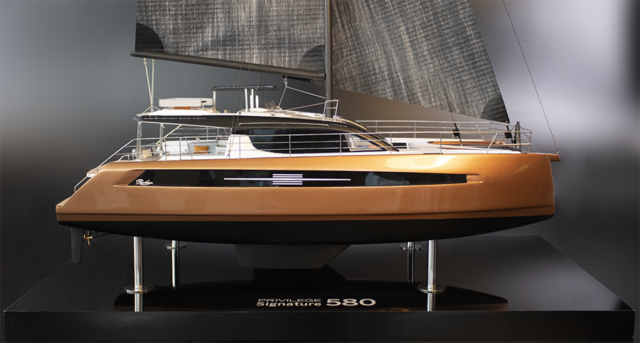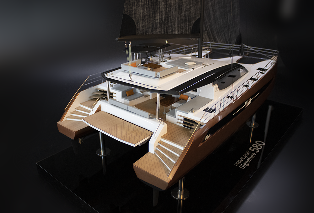 Have a look at this marvellous complete custom model of the Privilege P580, built upon request at scale 1/30 ou 60 cm LOA.