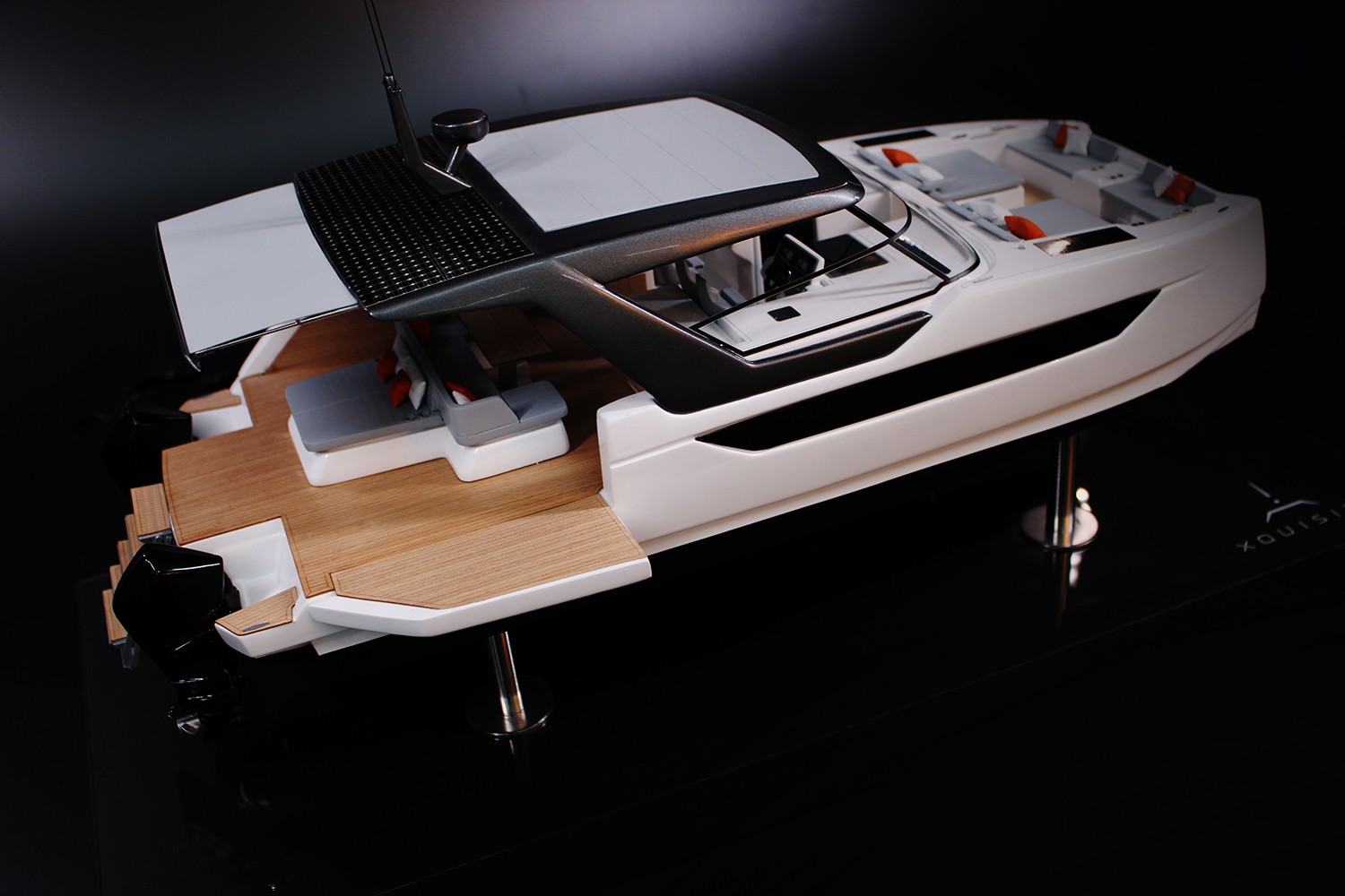 What about this stunning custom model of the XQuisite 40 power cat ( Dixon Yacht Design ) built upon request at scale 1/25 or 19 inches LOA.
